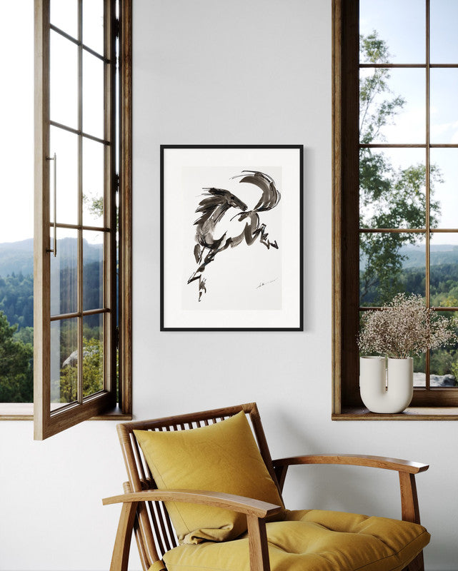 His approach relies on rigorous anatomical precision to render the explosive kinetic energy of a gallop, ensuring each subject possesses a palpable physical presence. Kwok demonstrates a masterful command of calligraphic brushwork, frequently employing the traditional "Fei Bai" (Flying White) technique to suggest rapid movement and wind resistance. Whether working with the delicate tonal gradations of a traditional ink wash to create volume or applying impasto-like textures in his acrylic pieces to emphasize muscular tension, Kwok’s work represents a sophisticated dialogue between the spontaneous spirit of the brush and the structural discipline of fine art theory. Every piece serves as a celebration of individuality, capturing the specific "life-force" that defines the soul of the horse.