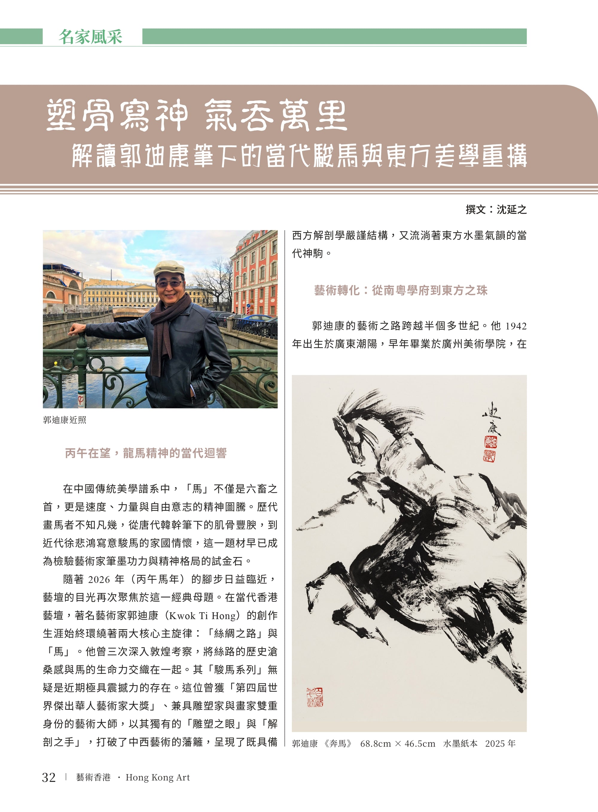 〈塑骨寫神,氣吞萬里—解讀郭迪康筆下的當代駿馬與東方美學重構〉。《藝術香港》(Hong KongArt),2026 年 01-02 月,第 61 期,頁 32-35。作者:沈延之。